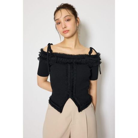 【華やかなチュールが目を惹く、主役ニットトップス!】■ポイント襟周りと裾に生地をたっぷり使ったチュールがドッキングされたニットトップスです。■ディテールチュールのフリルを2段にし、立体的で華やかなアイテムに仕上げました。裾にはスリットが入っており、抜け感あるコーデになります。■スタイリングミニスカート合わせでフェミニンムード高めたコーデや、スラックス合わせで大人カジュアルなコーデがおすすめです!■生地透け感:なし裏 地:なし伸縮性:あり光沢感:なし厚 さ:普通■商品のお気に入り登録お気に入りアイテムの再入荷・在庫1点などの通知を受け取ることができます。[注意事項]※画像の商品はサンプルです。実際の商品と仕様、加工が若干異なる場合があります。※画像の商品は光の照射や角度、お使いのモニター環境により、実物と色味が異なる場合がございます。※着用、お取り扱いの際は、アテンションタグをご確認ください。