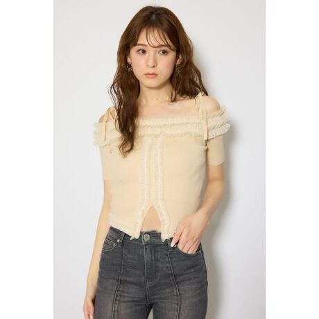 オフショルフリルニットトップス