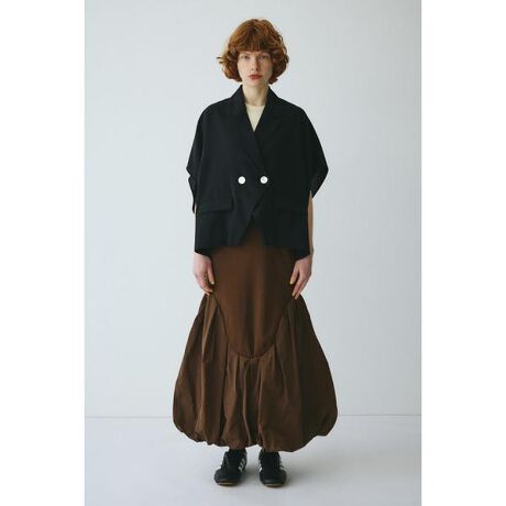HeRINらしい丸みを帯びた切替がポイントのデザインスカートポンチ素材と布帛素材のドッキングシルエット。ウエストはゴムでEASYに履けるのも嬉しい。表面が滑らかでハリのある、上質な印象を持つポンチ素材を使用。裾のバルーンは清涼感のある布帛生地を使用し、構築的な形を生み出しています。ラウンドスイッチングスカート[注意事項] ※画像の商品はサンプルです。実際の商品と仕様、加工が若干異なる場合があります。 ※画像の商品は光の照射や角度、お使いのモニター環境により、実物と色味が異なる場合がございます。 ※着用、お取り扱いの際は、アテンションタグをご確認ください。
