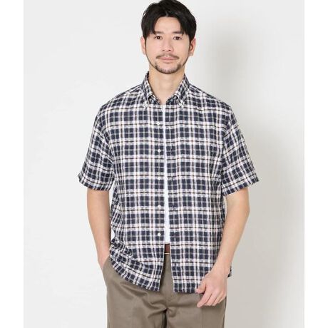2026年春夏のシーズンタータン「サンライトニューヨーカータータン」を用いた半袖ボタンダウンシャツ。爽やかな配色と軽やかな素材感で、夏の装いに彩りを添える一着です。