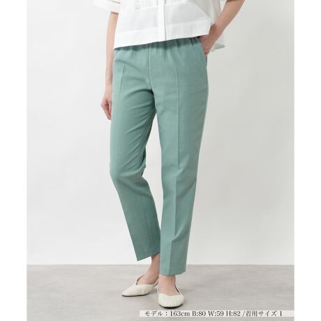 伸縮性を備えた生地を使用し、美しいシルエットとストレスフリーな穿き心地を両立させたテーパードパンツです。レッグラインをすっきりと見せるセンタープレスがスマートかつ知的なニュアンスをプラス。初夏のシーズンに相応しいやや薄手でさらりとした質感は肌離れが良く、気温が上がる日のお出かけも快適にサポートしてくれます。ベーシックなデザインで様々なトップスとバランス良く決まる汎用性の高い一本となり、デイリー使いはもちろん、アクティブなシーンや旅行先でのリラックススタイルにも重宝します。