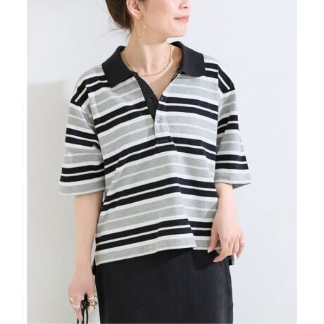 太ピッチのマルチボーダーが魅力的な襟付きカットソー。