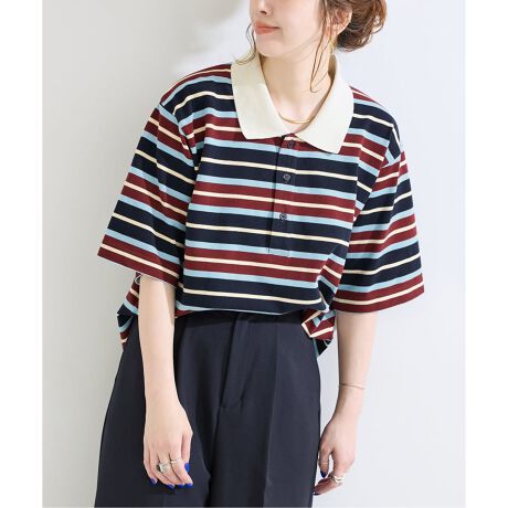 太ピッチのマルチボーダーが魅力的な襟付きカットソー。