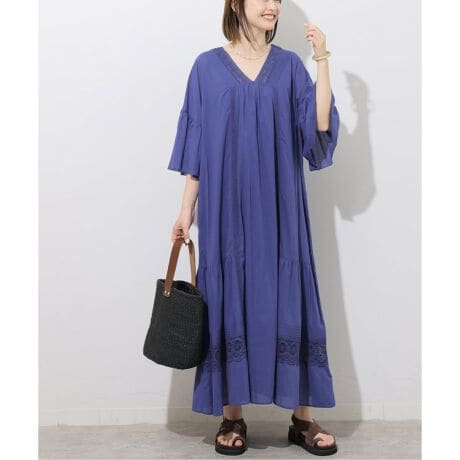 《予約》コットンボイルVネックレースワンピース