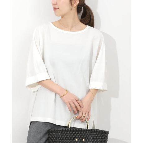 ◆袖口のギャザーが映える、楽に着られてきちんと見えする万能ドルマンブラウス