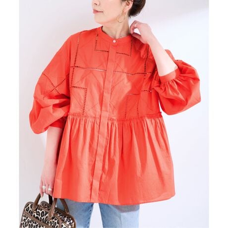 立体感のある刺繍と程よいボリューム感が魅力のブラウス。