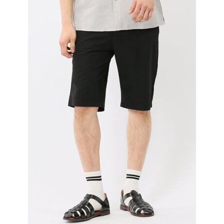 夏のカジュアルセットアップにぴったりなショートパンツです。フロントファスナー&ボタン、ベルト通し付き、前後ポケット付き。膝が半分隠れる程度の丈感で、綺麗目な印象に仕上げています。