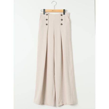 爽やかな印象を与えてくれる、綺麗目なマリンパンツです。フロントの飾りボタンがアクセントになっています。ウエストはバックシャーリングで着用ストレスを軽減しています。左サイドファスナー付き、前ポケット付きです。