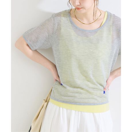 シアーニットTEE×配色デザインのニットタンクのセットアイテム。