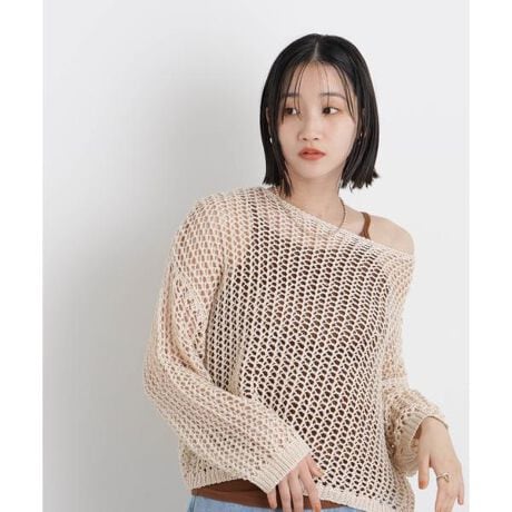 軽やかで抜け感のあるスタイリングが完成するメッシュニットトップス。透かし編みの程よい肌見せがヘルシーな印象の一着。Tシャツやキャミソールなど、インナー次第で季節感あるスタイリングができ幅広い着回しを楽しめます。