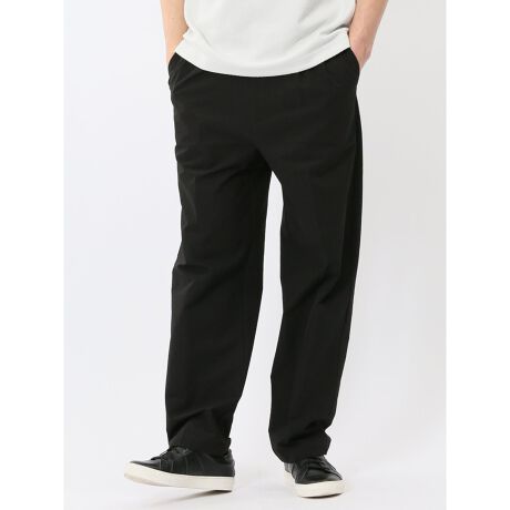 リラックス感のある、ややゆったりとしたワイドシルエットです。腰回りにゆとりがあって動きやすいタック入りで、裾に向かってテーパードを効かせています。裾部分は加工済みです。(股下74cm・シングル仕上げ)