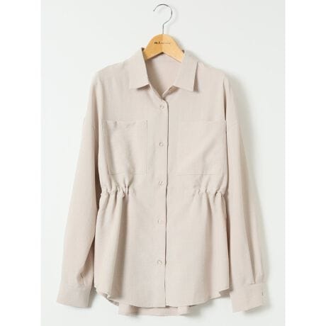 爽やかな印象を与えてくれる、長袖のシャツジャケットです。両胸のポケットとウエストのドロストコードで、サファリジャケットのような雰囲気に仕上げています。袖口をまくったり、ウエストを絞ってメリハリをつけると、スタイルアップ効果があります。