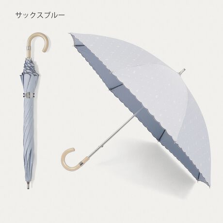 ピンストライプ×ポロポニーをミックスしたドット柄のコンビネーションが洗練された雰囲気の長傘。