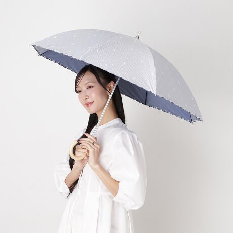 ピンストライプ×ポロポニーをミックスしたドット柄のコンビネーションが洗練された雰囲気の長傘。