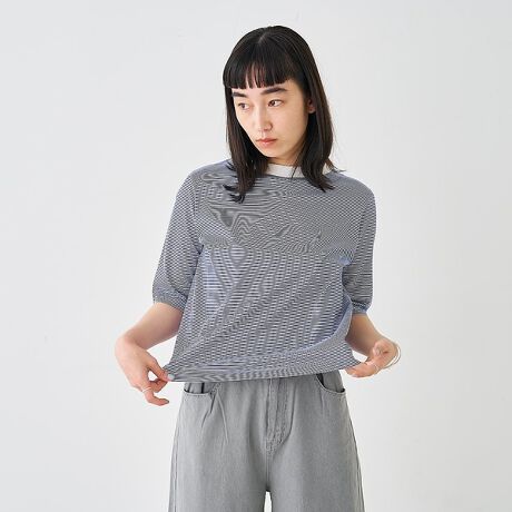 極限まで高密度で編みたてることで、透けにくく適度なハリ感を実現。