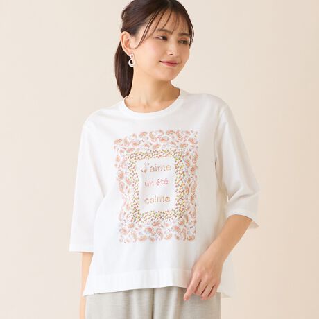 ペイズリー柄をフレーム風に仕上げたプリントTシャツ。