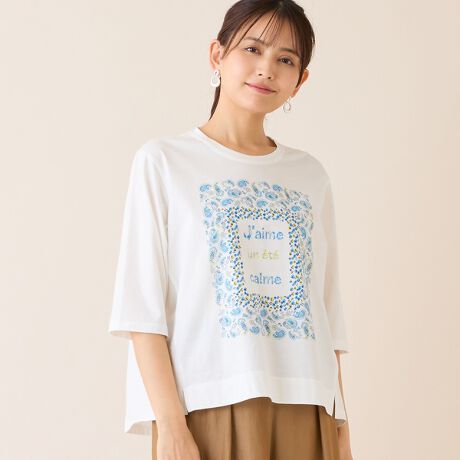 ペイズリー柄をフレーム風に仕上げたプリントTシャツ。
