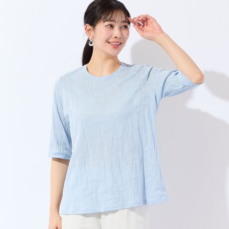 ドライな肌触りが春夏シーズンにピッタリで、表情のあるジャカードがさり気なくお洒落な一枚です。