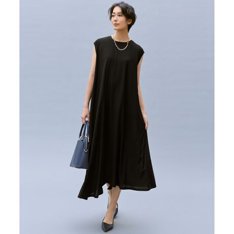 揺れるドレープが叶える大人の余裕ワンピース■デザイン豊かな広がりを持つタックと、アシンメトリーなシルエットが華やかなジャージワンピースです。落ち感のあるきれいめ素材を使用することで、イージーな着心地ながらも洗練された印象になっています。通勤から休日のお出かけまで、幅広いシーンで活躍します。■素材程よいストレッチ性と、細やかな凹凸感のある素材です。美しいドレープ性があり、上品で落ち着いた印象を演出します。さらに接触冷感機能に加えUVケア機能も備えており、暑くなる季節にも快適に着用いただけます。■同素材アイテムTブラウス(KKWRLM0431)パンツ(PRWRLM0431)フレンチスリーブカットソー(KKWRLM0432)