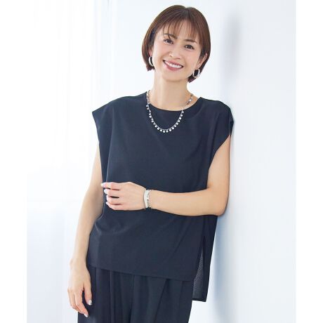きちんと感と抜け感を、どちらも味方にする上品フレンチスリーブ■デザイン肩まわりに施したタックから生まれるドレープが、シンプルながらも上品な印象を与えるフレンチスリーブトップスです。裾はラウンドカットにし、前後差をつけることで、インでもアウトでもバランスよく決まるデザインに仕上げました。同素材のパンツ(PRWRLM0431)と合わせたセットアップスタイルもおすすめです。■素材程よいストレッチ性と、細やかな凹凸感のある素材です。美しいドレープ性があり、上品で落ち着いた印象を演出します。さらに接触冷感機能に加えUVケア機能も備えており、暑くなる季節にも快適に着用いただけます。■同素材アイテムTブラウス(KKWRLM0431)パンツ(PRWRLM0431)ワンピース(OPWRLM0431)