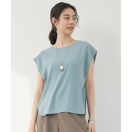 きちんと感と抜け感を、どちらも味方にする上品フレンチスリーブ■デザイン肩まわりに施したタックから生まれるドレープが、シンプルながらも上品な印象を与えるフレンチスリーブトップスです。裾はラウンドカットにし、前後差をつけることで、インでもアウトでもバランスよく決まるデザインに仕上げました。同素材のパンツ(PRW7LM0431)と合わせたセットアップスタイルもおすすめです。■素材程よいストレッチ性と、細やかな凹凸感のある素材です。美しいドレープ性があり、上品で落ち着いた印象を演出します。さらに接触冷感機能に加えUVケア機能も備えており、暑くなる季節にも快適に着用いただけます。■同素材アイテムTブラウス(KKW7LM0431)パンツ(PRW7LM0431)ワンピース(OPW7LM0431)