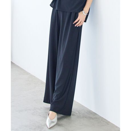 上品な落ち感で魅せるリラクシーなワイドパンツ■デザイン落ち感の美しい素材を活かした、ワイドシルエットのジャージパンツです。ウエストは総ゴム仕様でリラックス感のあるはき心地ながら、ドレープ性のある素材によりルーズに見えず、きれいめな印象に仕上げています。イージーさと上品さを両立し、オンオフ問わず着ていただけます。同素材のTブラウス(KKWMLM0431)やフレンチスリーブカットソー(KKWMLM0432)と合わせたセットアップスタイルもおすすめです。※ベージュ(033)のみ、ペチコートパンツが付きます。■素材程よいストレッチ性と、細やかな凹凸感のある素材です。美しいドレープ性があり、上品で落ち着いた印象を演出します。さらに接触冷感機能に加えUVケア機能も備えており、暑くなる季節にも快適に着用いただけます。■同素材アイテムTブラウス(KKWMLM0431)フレンチスリーブカットソー(KKWMLM0432)ワンピース(OPWMLM0431)