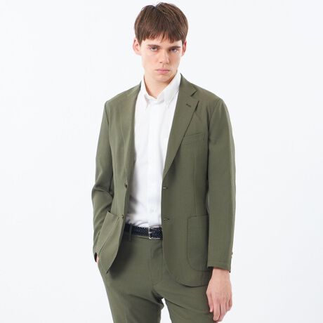 シングル2つボタン、腰パッチポケット、袖3つボタン仕様。背裏・袖裏を省いた一枚仕立てにより、非常に軽く快適な着心地です。コンパクトに収納できる為、持ち運びの利便性の良さで、ビジネスシーンはもちろんのこと、トラべルシーンにも活躍します。