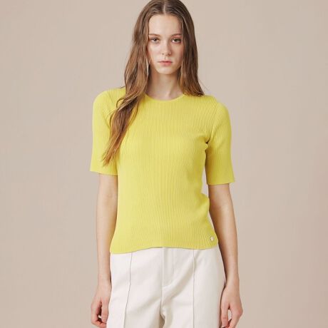 強撚のサラッとした肌さわりの半袖プルオーバーです。リブ組織ながら若干張り感のある素材で体のシルエットを拾いにくく、スタイリングしやすいアイテムです。同素材のカーディガン(品番:G5N72783)とアンサンブルで着用いただけます。