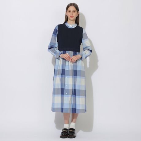 【WEB限定】クレストブリッジチェックニットコンビドレス
