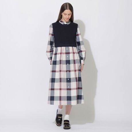 【WEB限定】クレストブリッジチェックニットコンビドレス