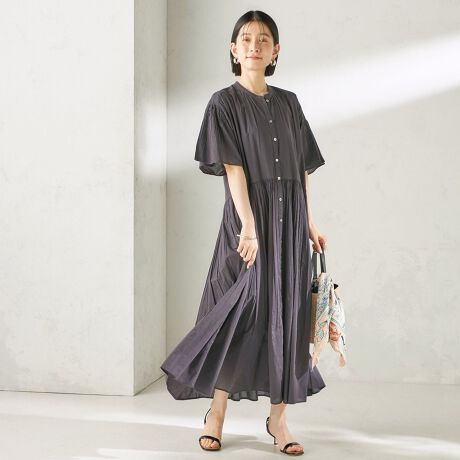 一枚着のワンピースとしても羽織りとしても使えて着こなしが広がる、ニュアンスディテールの万能ワンピース。