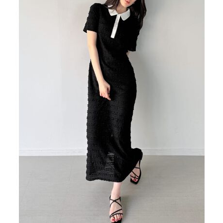 ストレッチフリルカットポロワンピース