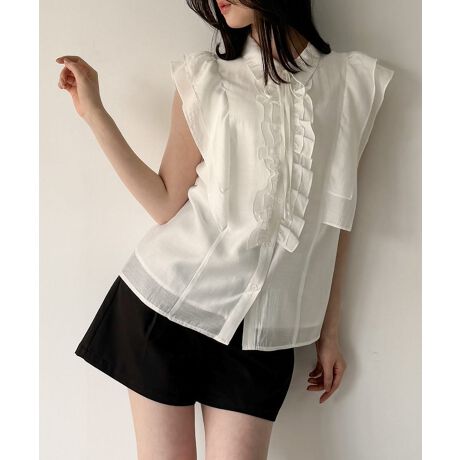 フリルノースリーブシアーブラウス