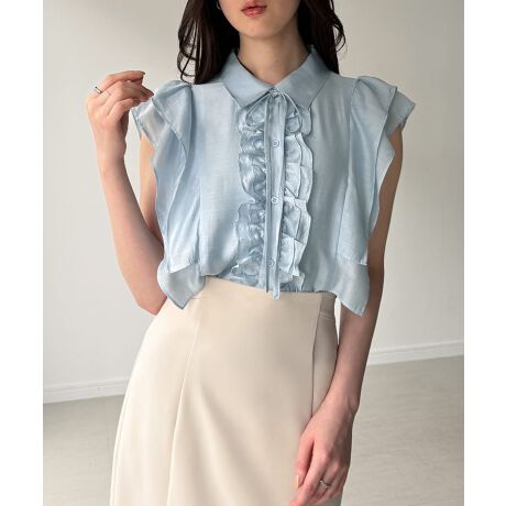 フリルノースリーブシアーブラウス