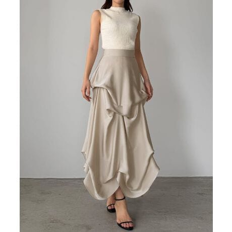Louere ハイウエストサテンタックデザインスカート