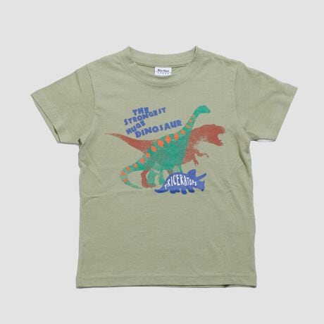 恐竜のグラフィックが印象的な、薄手の天竺Tシャツ。やわらかな素材感で動きやすさも抜群。 通園・通学はもちろん、デイリーにぴったりの一枚です。