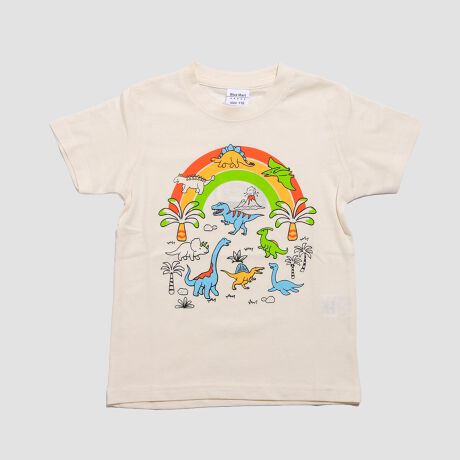 恐竜のグラフィックが印象的な、薄手の天竺Tシャツ。やわらかな素材感で動きやすさも抜群。 通園・通学はもちろん、デイリーにぴったりの一枚です。