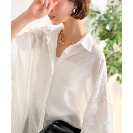 こなれた雰囲気を演出するシアーシャツ。