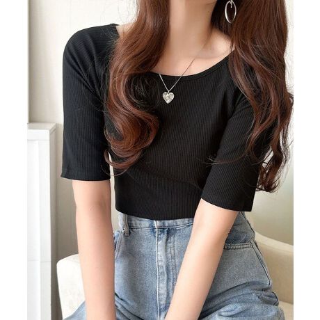 身体に沿うリブ素材で、着るだけで華奢見え叶う一枚♪