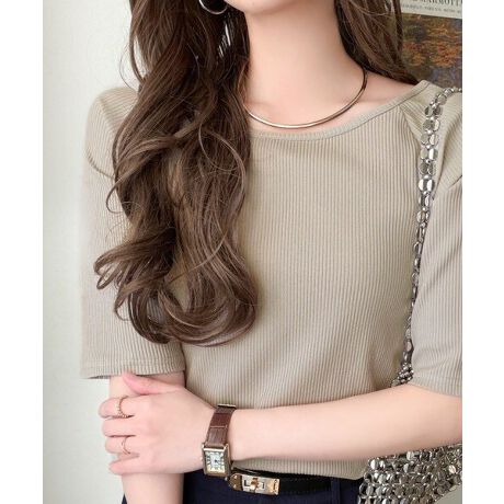 身体に沿うリブ素材で、着るだけで華奢見え叶う一枚♪