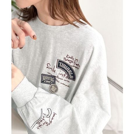 ゆるっとしたドルマンシルエットが自然なこなれ感を演出する刺繍ロンT。