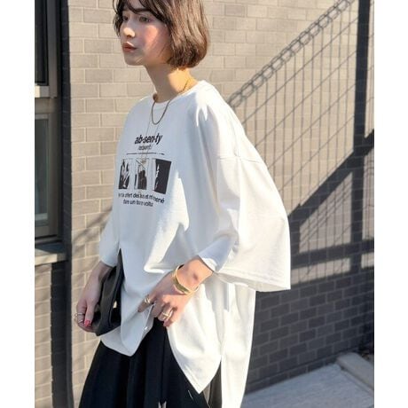 モノクロのフォトプリントが大人っぽい印象を与えます。