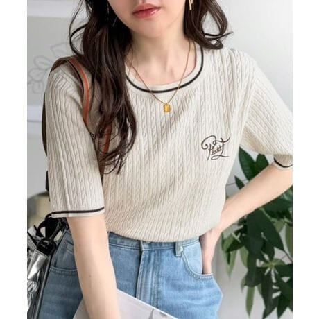 表情豊かなケーブル編みとサイン刺繍で魅せる、主役級サマーニット。