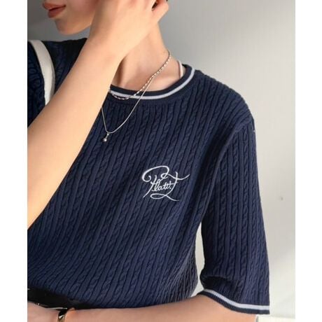 表情豊かなケーブル編みとサイン刺繍で魅せる、主役級サマーニット。