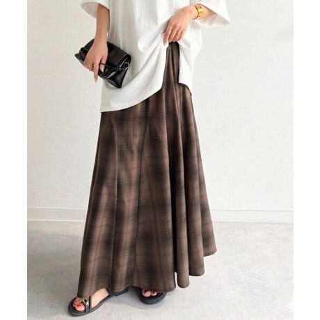 落ち着いた色合いのオンブレチェック(シャドーチェック)が特徴のフレアスカート。