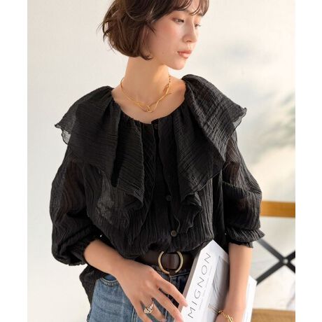 マルイウェブチャネル   /   クラシカルエルフ   /   トップス   /   ブラウス   /   【Classical Evon】フリルで着映える。シアー楊柳ブラウス(セットアップ可能)