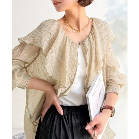 甘さをおさえたデザインなのでどんなボトムスにも合わせやすく羽織りとしても使えて
