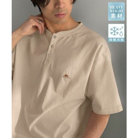 「ヘビーウェイト裾ドロスト付きヘンリーネックTシャツ」