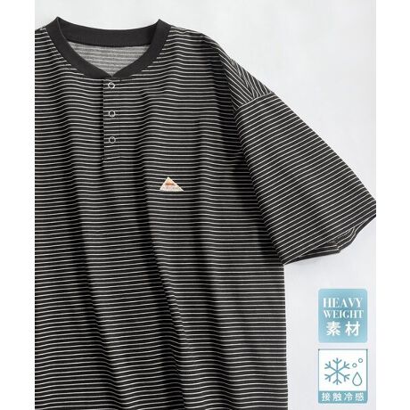 《JaVaジャバコラボ》【接触冷感機能付き】 裾ドロスト付き リングドット釦 ヘンリーネックTシャツ