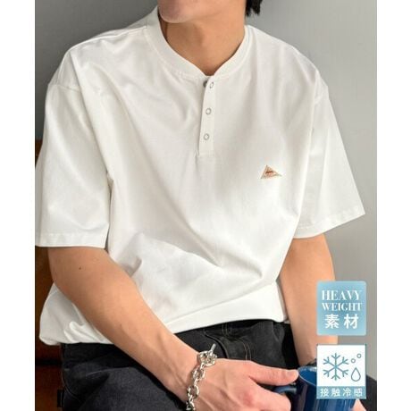 《JaVaジャバコラボ》【接触冷感機能付き】 裾ドロスト付き リングドット釦 ヘンリーネックTシャツ